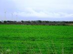 Vindmøller og Brøns Kirke set fra Vest Åbøllingvej