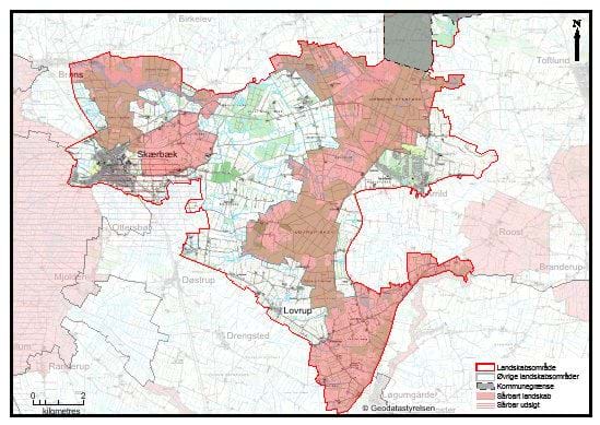 Det er karakteristisk, at bebyggelsen i området er præget af små og middelstore gårde, der ofte ligger diskret i det skovprægede og bakkede landskab. Landskabet vurderes som udgangspunkt robust over for nyt landbrugsbyggeri, når den afskærmende effekt fra bevoksning og terræn udnyttes til at indpasse byggeriet i landskabet.