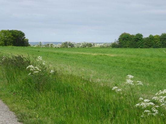 Fra kanten af bakkeøen er der visuel sammenhæng til de lavtliggende slettelandskaber nord og syd for bakkeøen, mens det mere skovprægede landskab mod vest her skaber afgrænsning af landskabet.