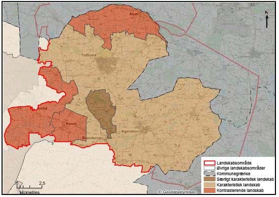 I det øvrige landbrugsområde fremstår de karaktergivende elementer og strukturer fortsat tydeligt, men bebyggelsesstrukturen er mere varieret, og samtidig er landskabet generelt mere åbent. Det svækker i nogen grad landskabskarakterens tydelighed, der derfor vurderes middel.