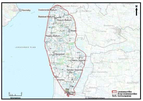 Mod vest afgrænses landskabsområdet langs kysten mod Vadehavet. Mellem Emmerlev Klev og Koldby er kysten præget af en svag kystklint, og nordpå udgøres kystlinjen af et lavt sommerdige. Mod nord og øst afgrænses landskabsområdet af de omkringliggende flade, ubebyggede og lavtliggende arealer domineret af marsk og mose. Mod syd går grænsen syd om Højer og følger den nordlige ende af det gamle dige mellem Rudbøl og Emmerlev Klev.