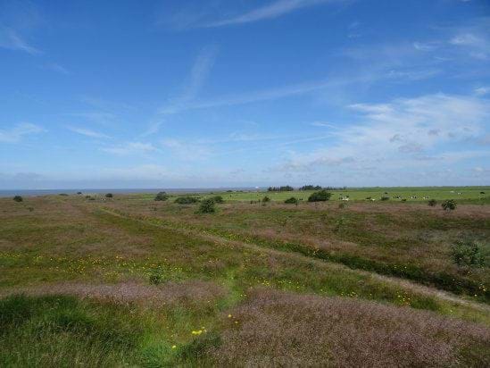 Fra bakkeøens vestvendte kanter er der udsigter ud over Vadehavet til øerne Rømø og Sild