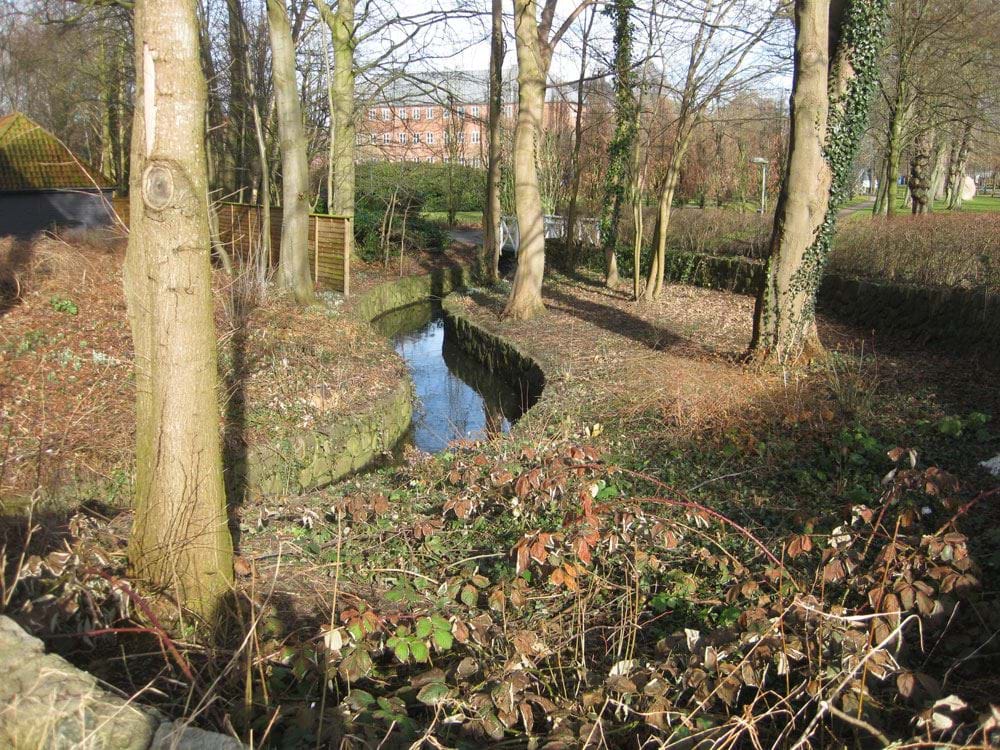 Skt. Laurentis-vandløbet passerer området og foreslås let slynget for at sætte den store græsflade langs Kongevej mere i spil og udnytte de naturmæssige værdier i området. Der opstår derved nogle mindre grønne lommer, hvor bækken danner en barriere mod den trafikerede vej. Vandløbet er ikke særlig rigt på vand, og det skal derfor nøjes overvejes i et fremtidigt projekt, hvorvidt den skal fremstå som en smal kanal med fast belægning på siderne eller som et vandløb med begrønnede sider med risiko for tilgroning og meget lidt vand (læs mere her).