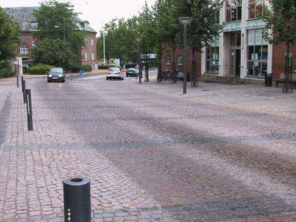 Den ændrede belægning i krydsene skal både være med til at markere portene/indgangene til midtbyen og til at sænke trafikhastigheden, da der ved disse kryds færdes mange fodgængere.
