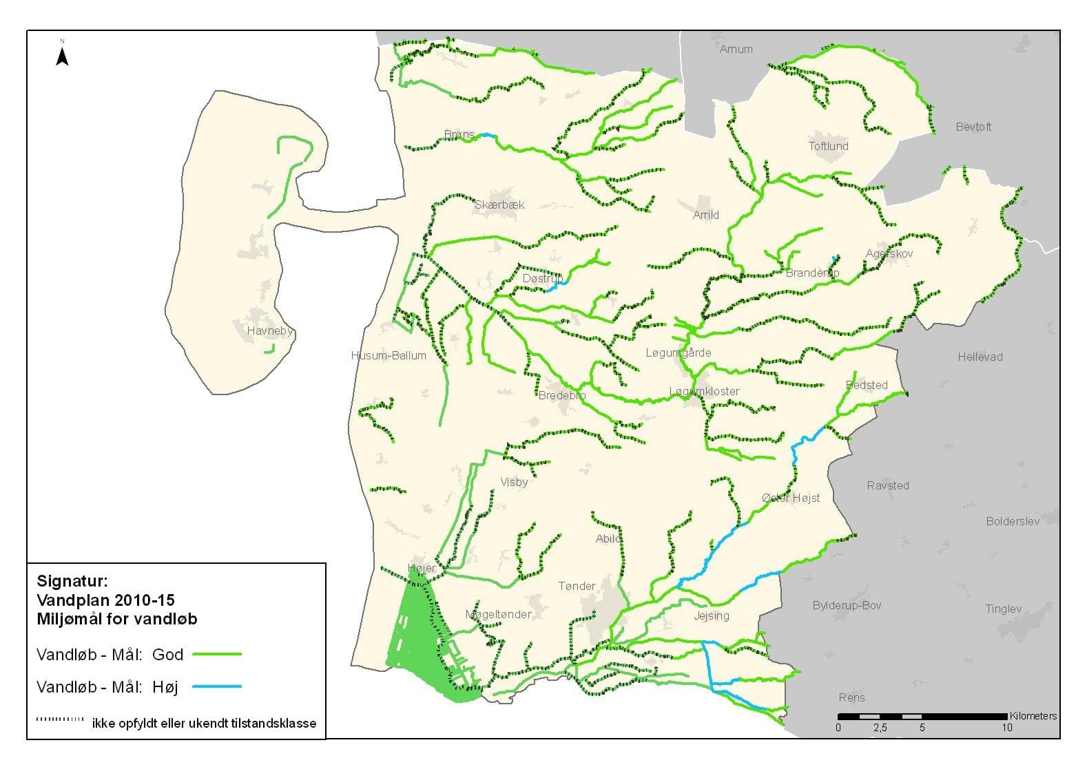 Miljømålene for vandløb i Tr Kommune kan ses i figur 3.